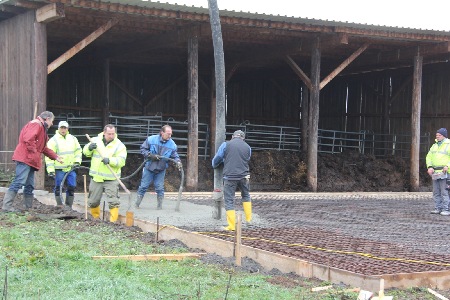 Im November 2012 wurde vor der Weideschutzhütte eine Bodenplatte betoniert. Sie dient als "Futterplatz" für die Winterfütterung der Weidetiere.