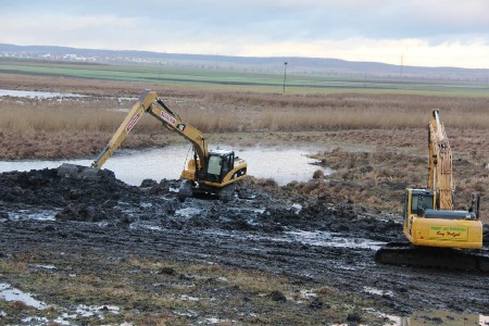 In unmittelbarer Nähe des Beobachtungsturmes wird ein Flachwasserbiotop gebaggert.