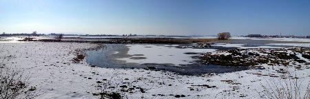 Optimaler Wasserstand für Wasservögel und Amphibien. Am 30. März 2013 ist es aber noch zu kalt. Für das Brut- und das Laichgeschäft. Nachts herrschen noch MInusgrade.